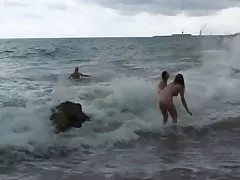 Trios - Dos chicas de estrangulación abajo una polla gorda, trios calientes